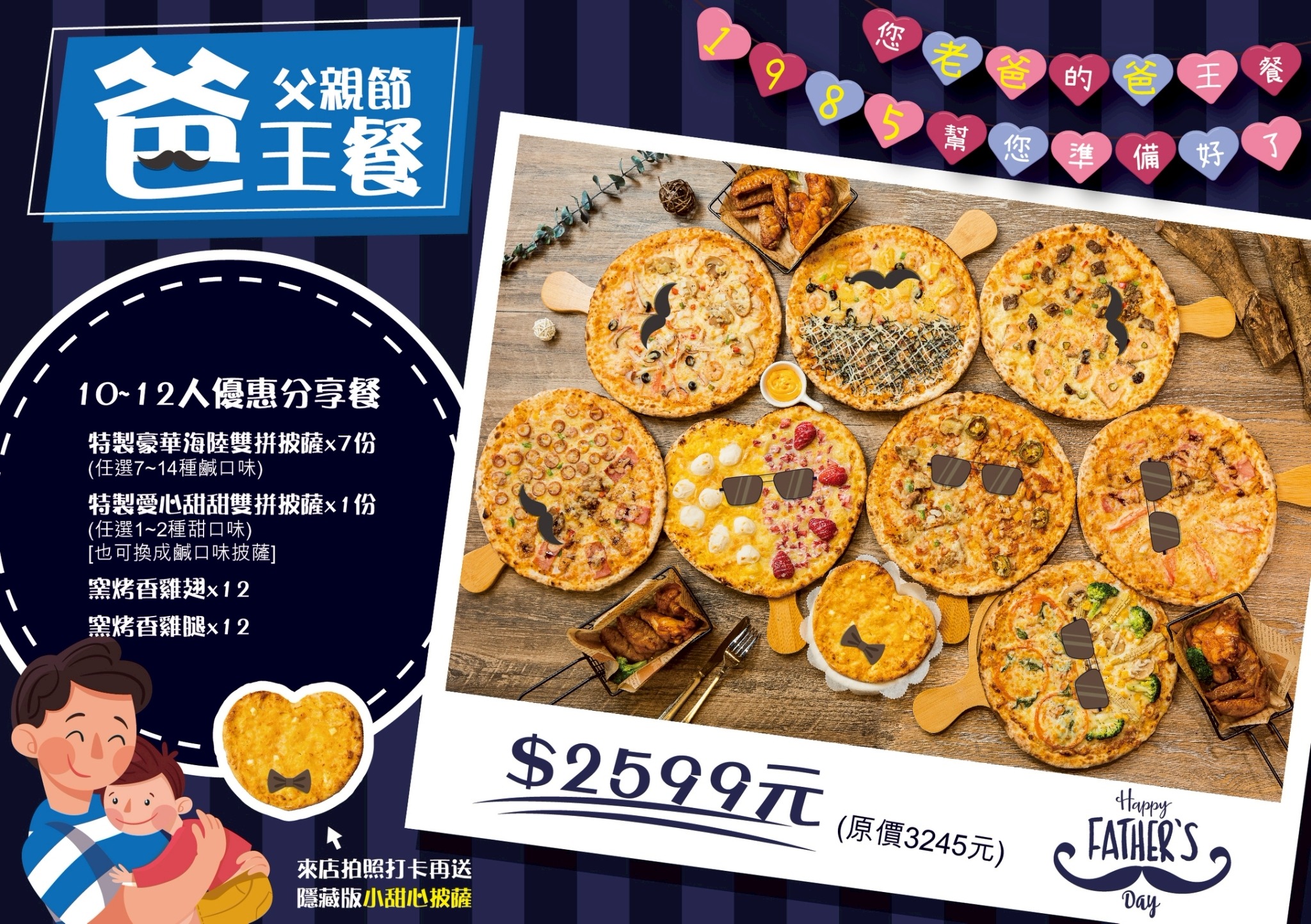內用、外帶、外送皆可 *約10吋.ㄧ份披薩適合1~2人享用.薄皮.可加起司、加雞翅、加特製鮮蝦
