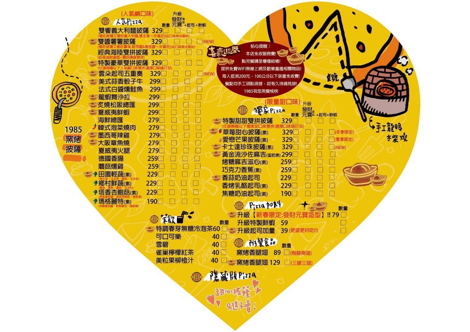 1985窯烤披薩菜單